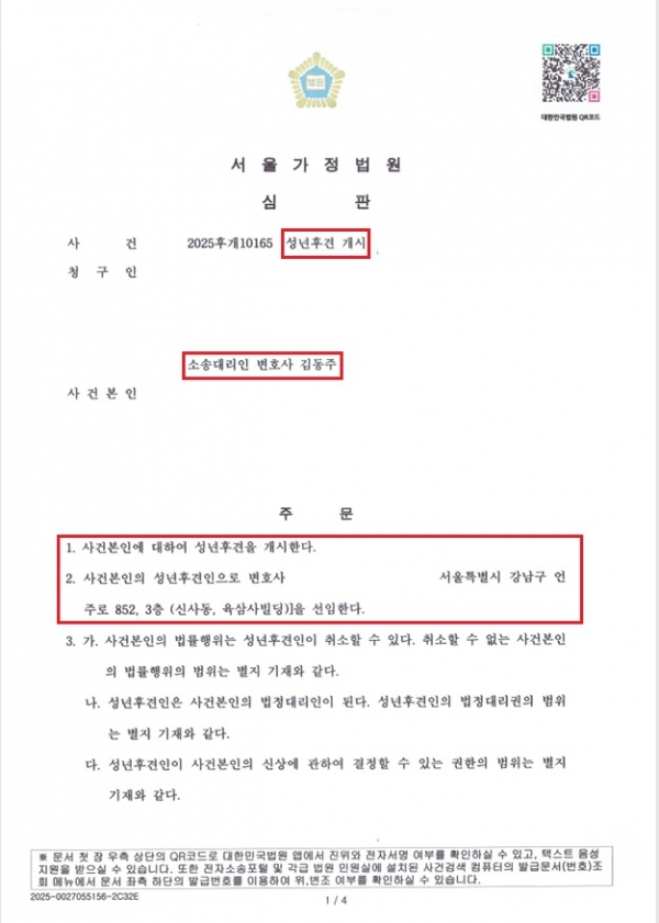 [가사] *성공사례* 치매 부모님 재산관리 위해 성년후견신청, 형제자매 반대 이의제기해도 받아