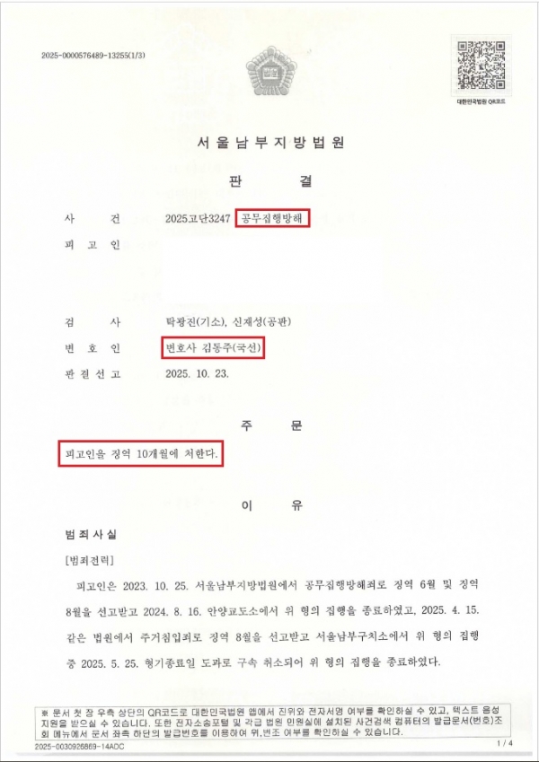 검찰은 징역 2년을 구형하였으나, 징역 10월을 선고로 방어하게 되었습니다.