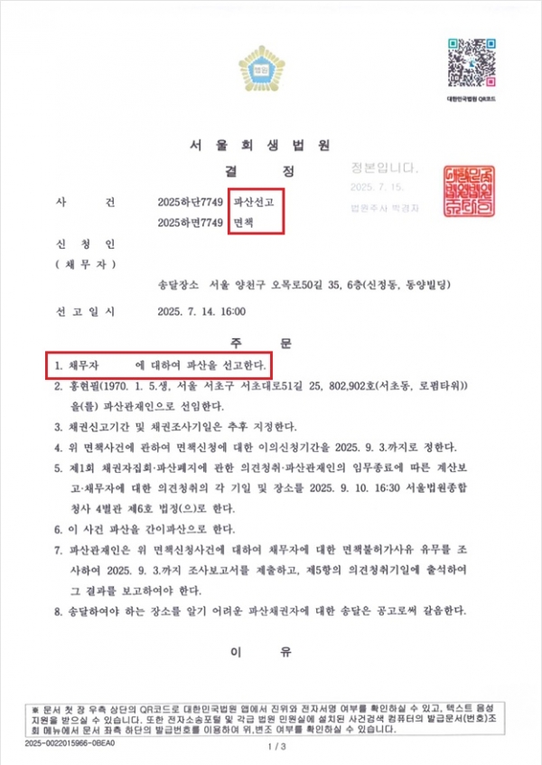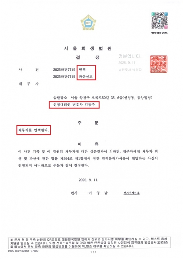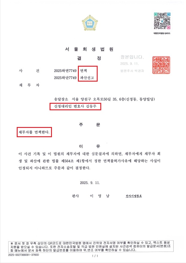 저희는 A씨가 파악하지 못하는 각종 사건(지급명령, 압류 등)을 파악하고 부채를 정리하여 파산 및 면책을 신청하였고, 송달료, 파산관재인 보수 등에 대하여 소송구조를 받을 수 있도록 조력하였습니다. 이에 A씨는 1억원의 채무와 이자 3천만원을 탕감받을 수 있게 되었습니다