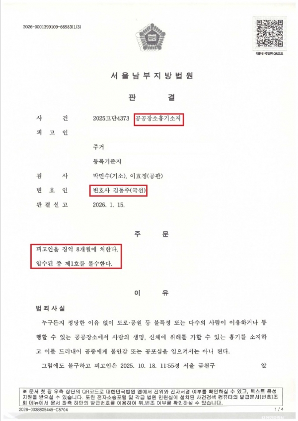 [형사] *성공사례* 공공장소흉기소지 재범, 구형의 1/3로 방어