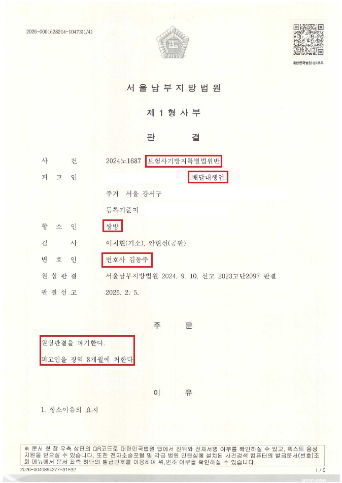 [형사] *성공사례* 보험사기 양형부당 항소, 기일 4회 연기 일부 변제 처벌 낮춰