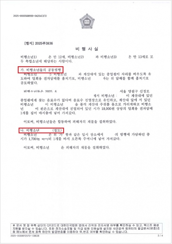 만13세 중학교 1학년 남학생인 A군은 만12세, 만13세와 함께 특수절도를 저질렀고, 단독으로 절도를 하였습니다.